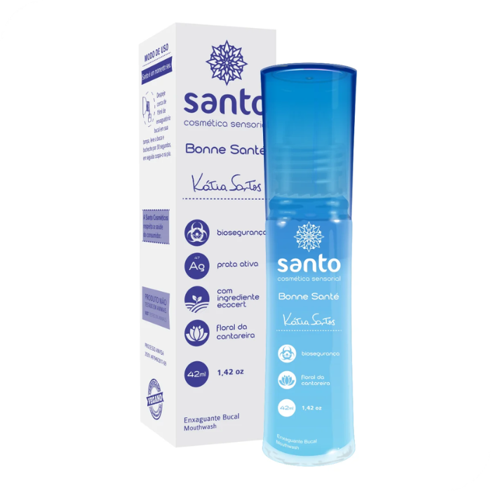 Bonne Santé Enxaguatório biotecnológico que propicia proteção e segurança antes e depois de contatos íntimos através de beijos, tem sabor refrescante e mentolado, florais da Cantareira, lactobacilos, melaleuca e prata ativa. Pode ser usado também para corrigir halitose.